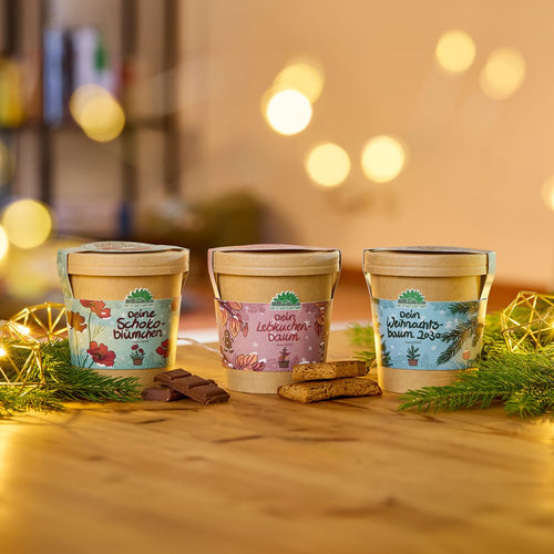 Heute kannst du eins von drei unserer ausverkauften (!) weihnachtlichen Anzuchtsets mit Schokoblümchen, Weihnachtsbaum 2030 und Lebkuchenbaum gewinnen! Viel Glück! 🍀