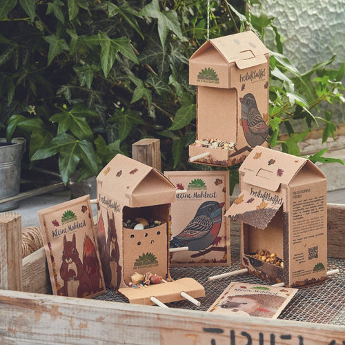 Heute kannst du eins von zwei Tierfutter-Geschenksets mit je drei Freiluftbuffets und drei kleinen Mahlzeiten für Vögel, Igel und Eichhörnchen gewinnen. Viel Glück! 🍀