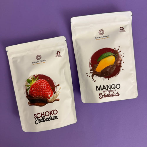 Heute kannst du ein Snack-Paket mit Schoko Erdbeeren und Mango in Vollmilchschokolade von Sultan's Palace gewinnen. Viel Glück! 🍀