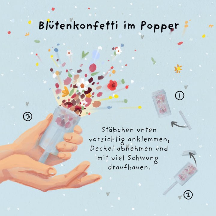 🎉 Tan simple, tanta alegría:Inserta el tallo, golpea el popper con fuerza desde abajo y ¡lloverá confeti floral duradero! Perfecto para sorpresas, fotos de grupo o simplemente para animarte en el día a día.