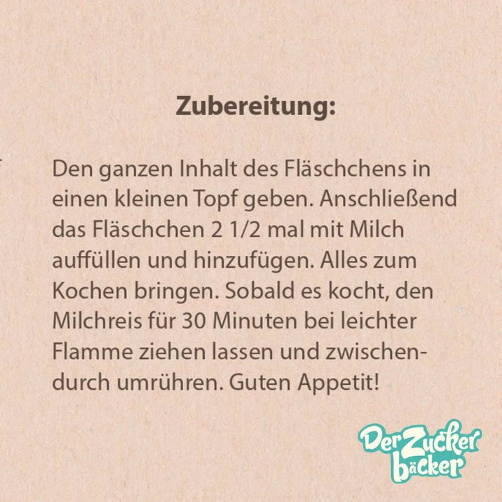 El arroz con leche representa la calidez, la comodidad y el sabor de casa. Con la botella DIYArroz con leche con canela y azúcarDer Zuckerbäcker te permite preparar fácilmente este clásico dulce.
