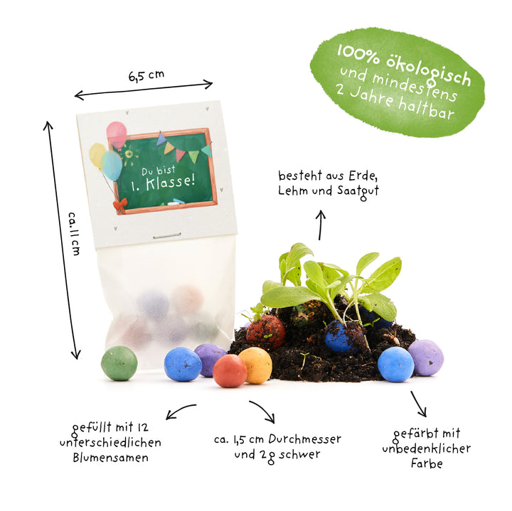 Sostenible y apto para niños:Las coloridas bolas de semillas están hechas de materiales naturales, se envasan sin plástico y tienen una vida útil de al menos dos años. Un regalo para la vuelta al cole que alegra y es bueno para el medio ambiente.