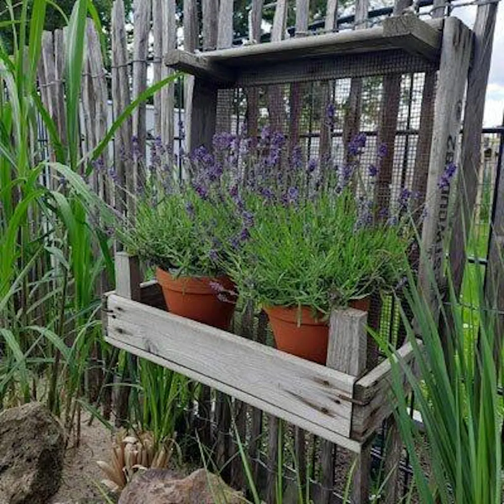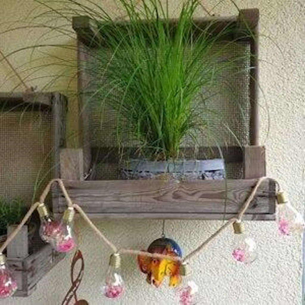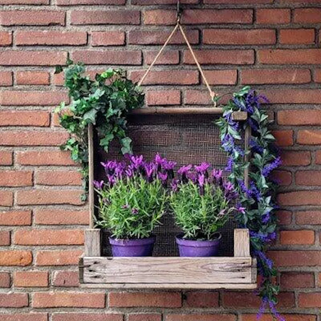 Estante de jardín estrecho hecho con colador de cebolla