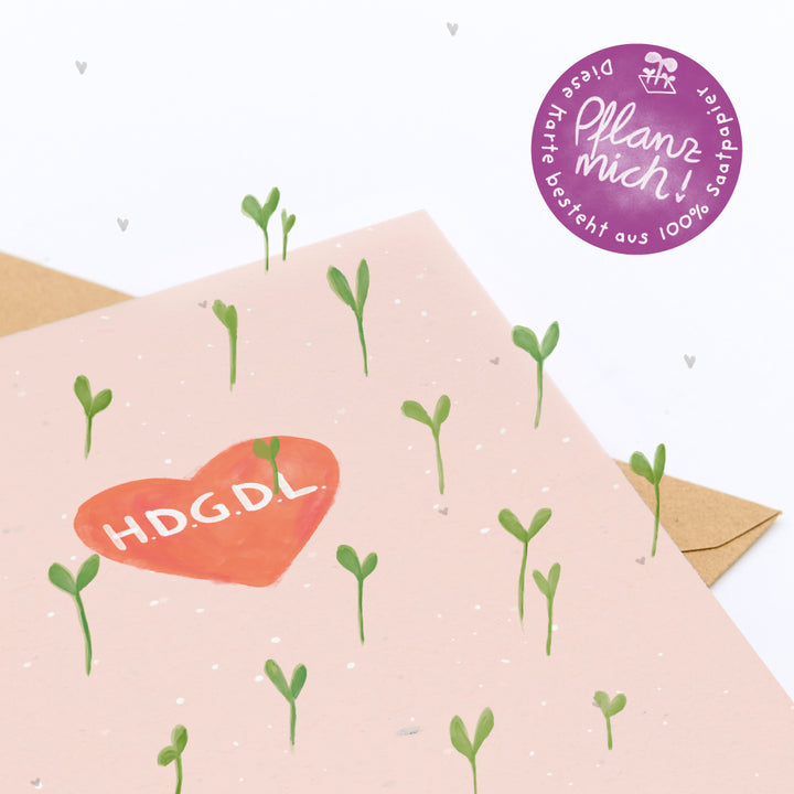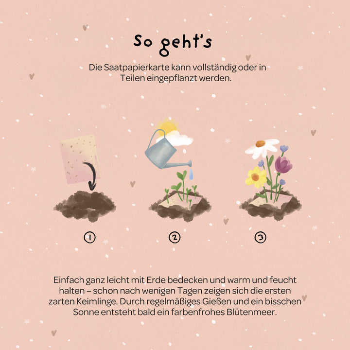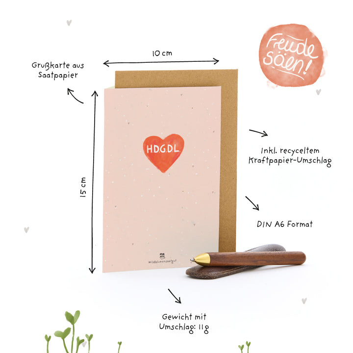 Sostenible y libre de plásticoLa tarjeta está hecha de papel de semillas compostable, el sobre está hecho de papel kraft, la funda es biodegradable: un hermoso saludo con corazón y actitud.