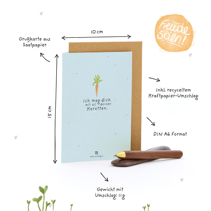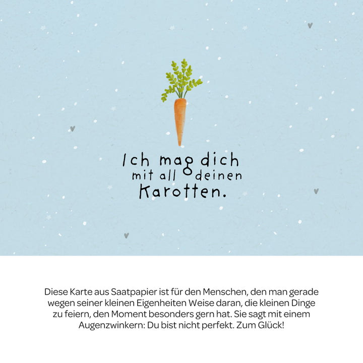 Un sentimiento que echa raícesPronto crecerán zanahorias de verdad del papel de semillas, profundamente arraigadas y maravillosamente imperfectas. Como las mejores relaciones de la vida: honestas, encantadoramente torcidas y simplemente adorables.