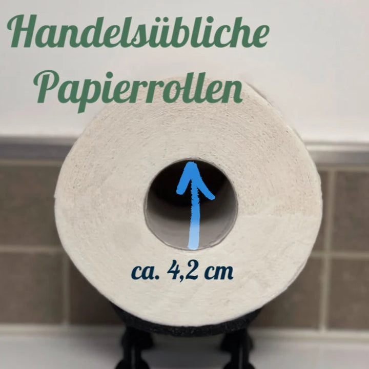 El portarrollos de papel higiénico “Emma” aporta ingenio y orden al baño: apilable, decorativo y simplemente especial.