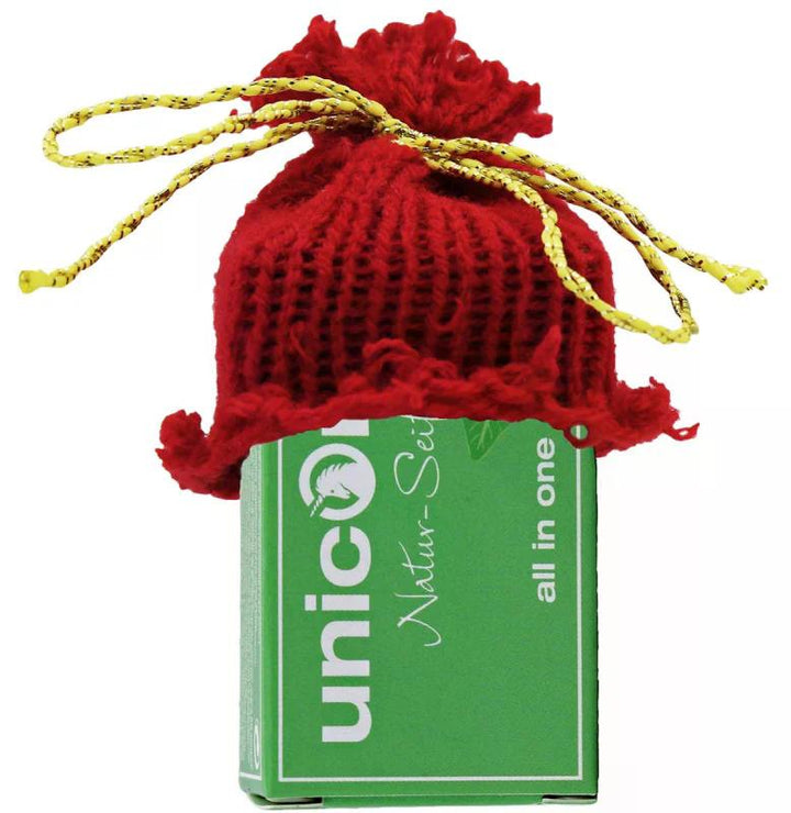 Envuelto en un gorro rojo de punto, este jabón es un elemento atractivo en el calendario de Adviento: práctico, de alta calidad y especial.