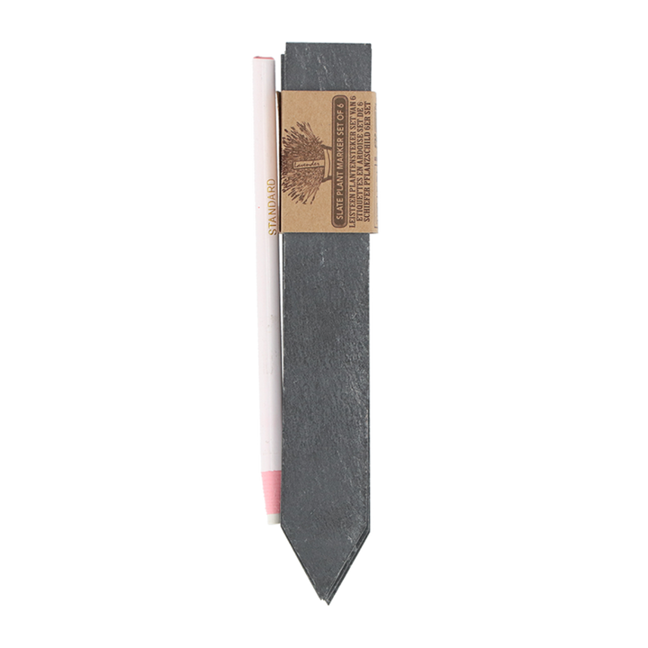 Este juego de seis marcadores de pizarra para plantas, que incluye un crayón de cera, es una herramienta sencilla para cualquiera que quiera sembrar, plantar o trasplantar en el jardín, en el balcón o en el alféizar de la ventana.