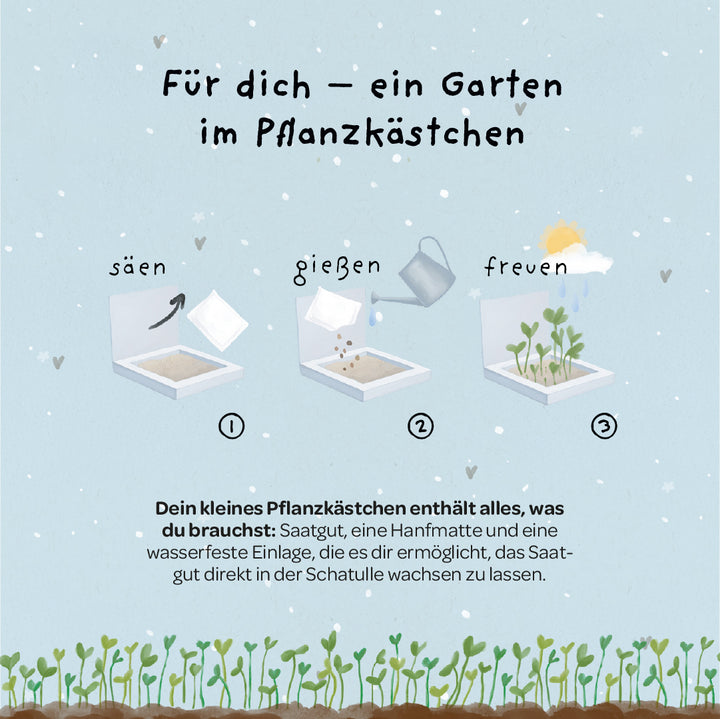 Un regalo con corazónYa sea para animar, consolar o como un gesto cariñoso entre amigos, este set es una forma especial de decir: "Te veo. Pienso en ti. Y todo estará bien". El raigrás que contiene crece con rapidez y vigor, como si se le diera espacio a los sentimientos.