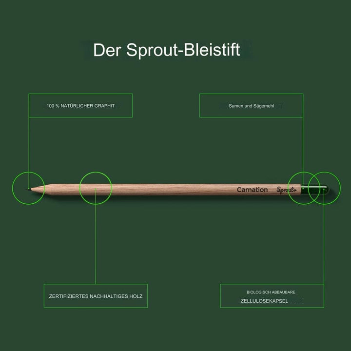 El lápiz de semillas es una invención de Sprout. Puedes aprender más sobre la historia de Sprout.aquíSin embargo, obtenemos la pluma deNuestro socio Green Advertising, una agencia especializada en artículos promocionales sostenibles, que nos gustaría presentar aquí como marca