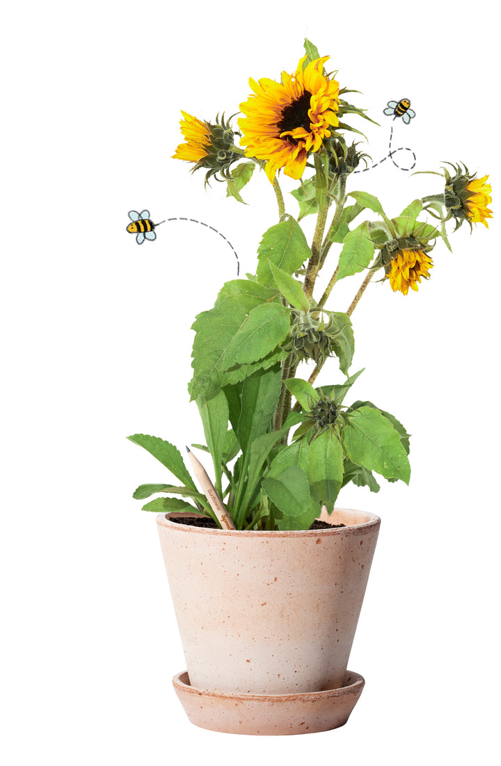 El lápiz con semillas no es un lápiz cualquiera. Una vez que cumple su función, el extremo del lápiz no va a la basura como siempre, ¡sino a una maceta! Plántalo, dale sol, riégalo y dale cariño, y observa cómo el lápiz usado se convierte en un hermoso girasol.